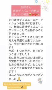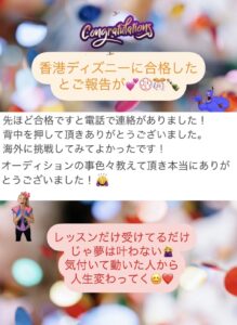 香港ディズニーランドなど、アジア圏で対面オーディション(ライブオーディション)がある時は思い切って参戦してみるのも手です!生徒さんも何名か送り込んでいます🤗